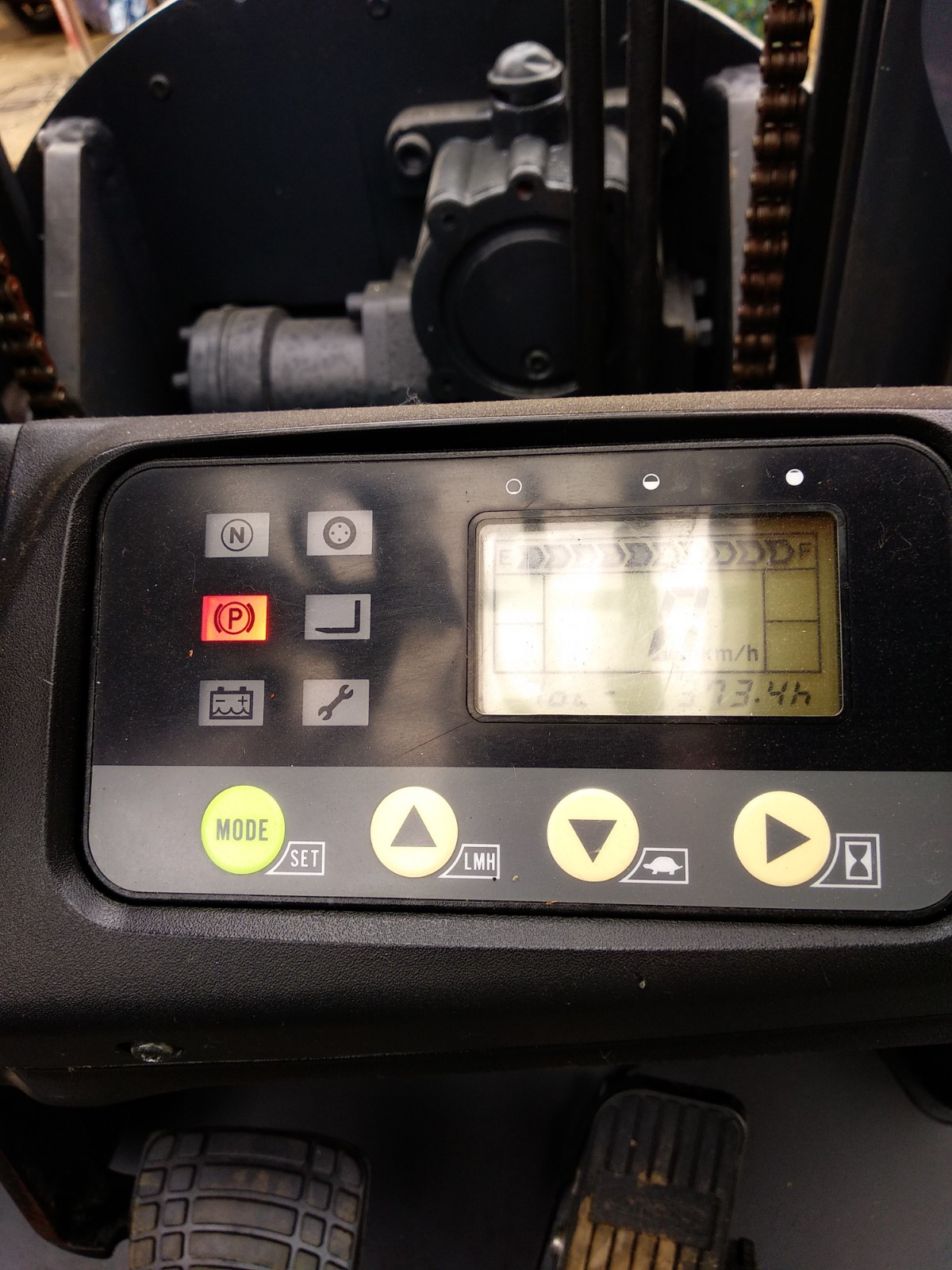 Двигатель: аккумуляторный, мощностью 9 кВт. Поставляется с производительной тяговой батареей емкостью 402 А/ч.