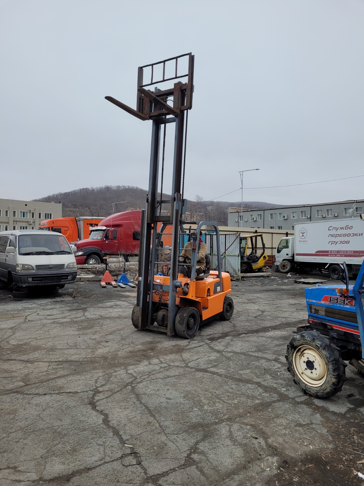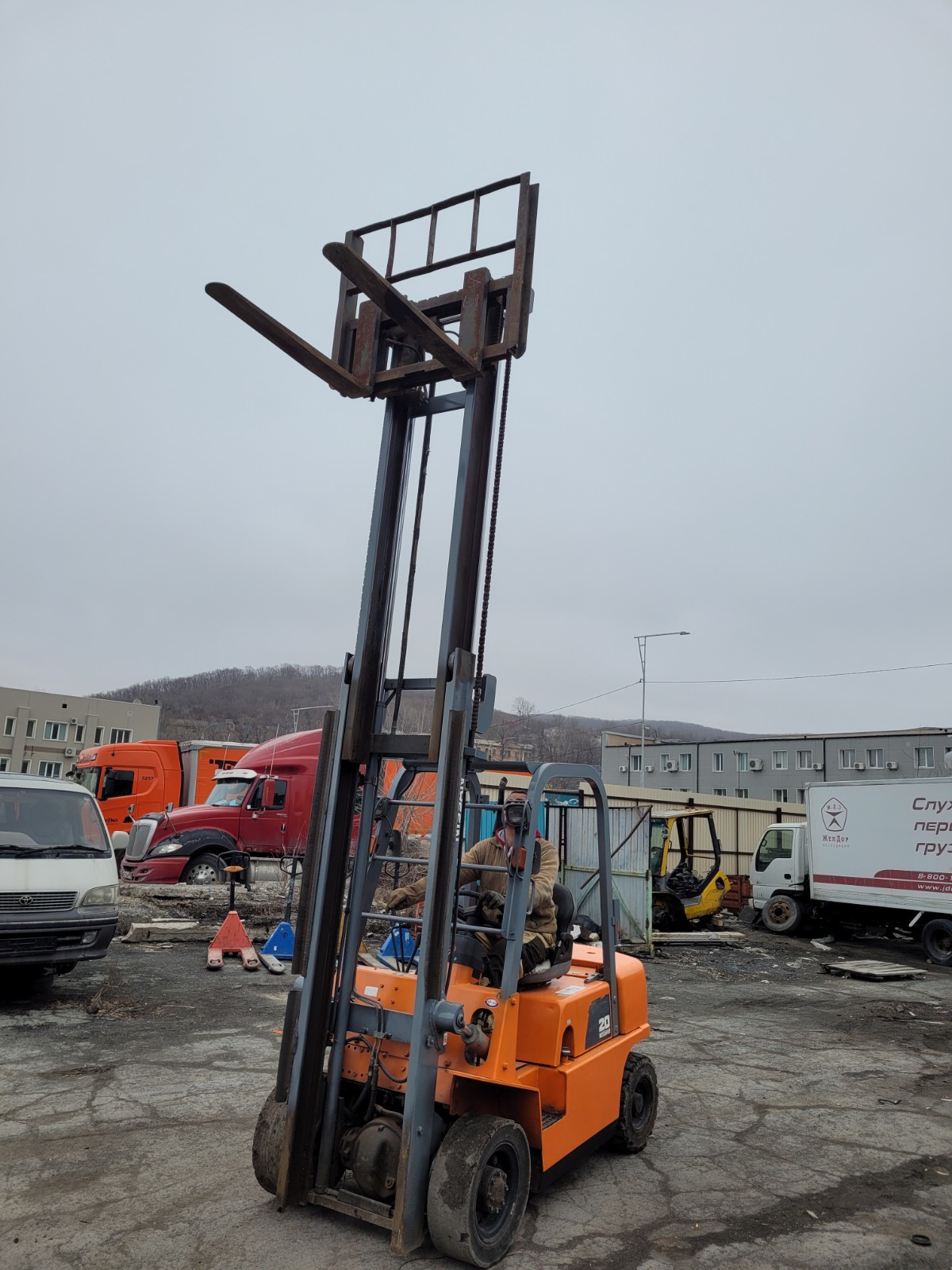 Высота подъема 4 метра. Грузоподъемность 2000 кг. Смещение каретки.
